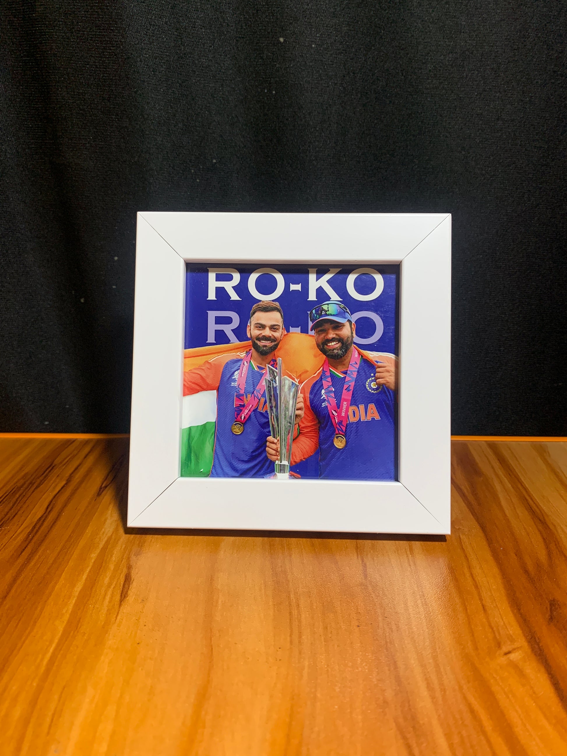 Elevate your collection with our meticulously crafted 5x5 Ro-Ko collectible frame. Featuring stunning artwork of the iconic cricketer, this display piece captures his essence in vivid detail.